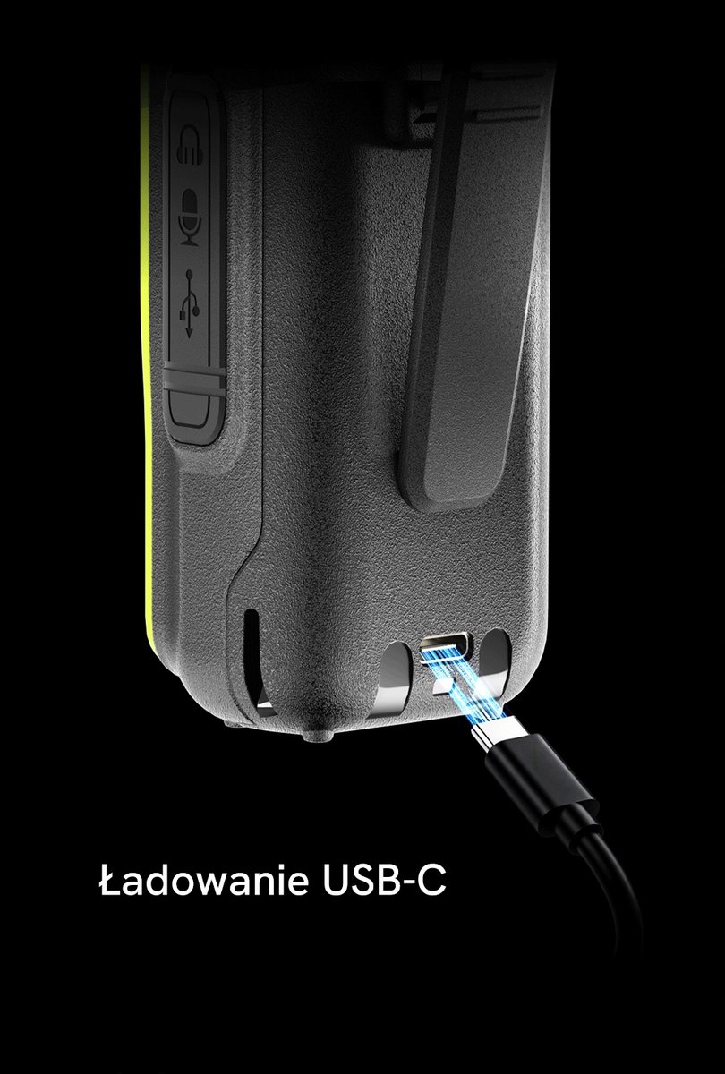 Radiotelefon posiada port USB-C do ładowania akumulatora.