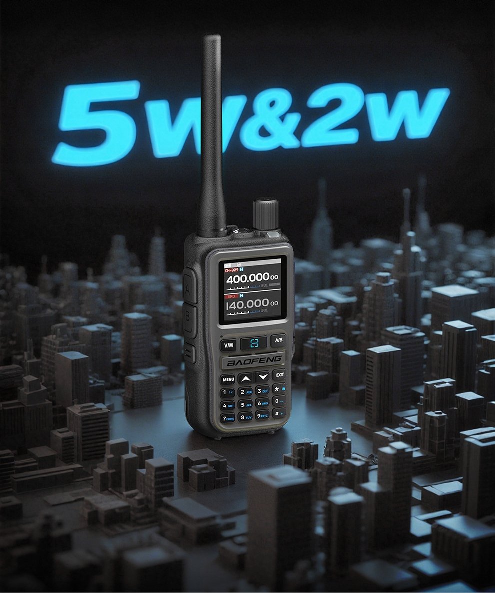 Radiotelefon Baofeng UV-5R EU Mini jest profesjonalnym radiem krótkofalarskim, które idealnie sprawdzi się w pracy, do rodzinnych wyjazdów, spacerów itp. Baofeng UV-5R EU Mini to dwupasmowy radiotelefon (duobander) o mocy 5 watów z kolorowym wyświetlaczem, klawiaturą DTMF i funkcją Dual Watch i szybkiego szukania częstotliwości.