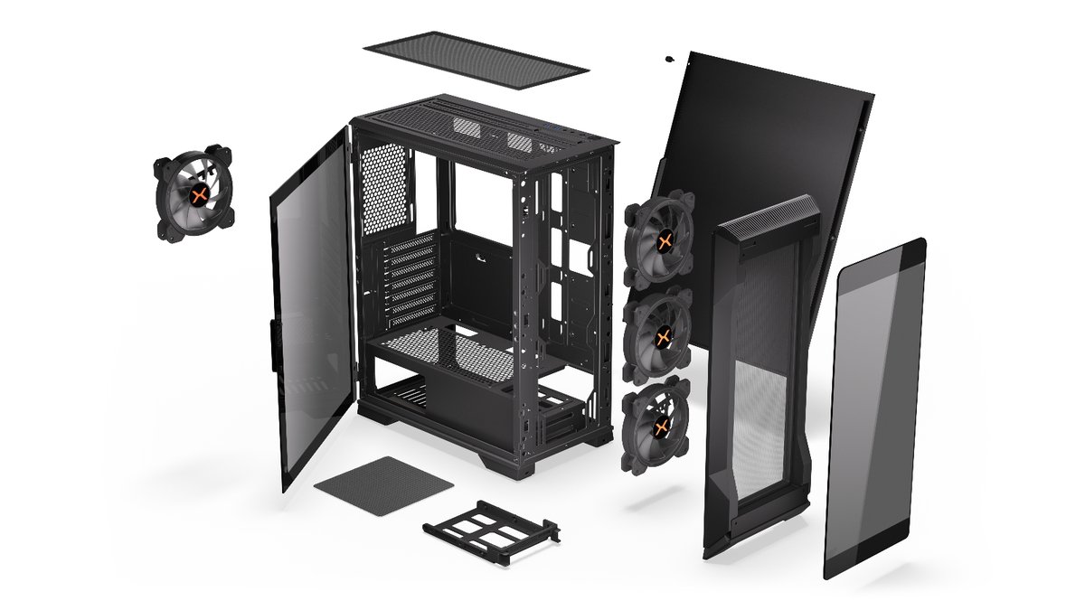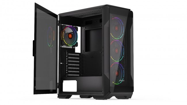 - Efektywne Chłodzenie: Cztery wentylatory ARGB 120 mm gwarantują nie tylko niskie temperatury, ale także estetyczne oświetlenie wnętrza.