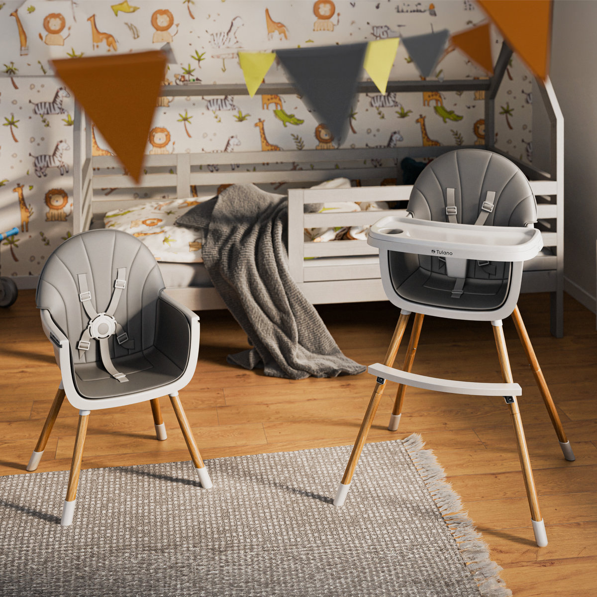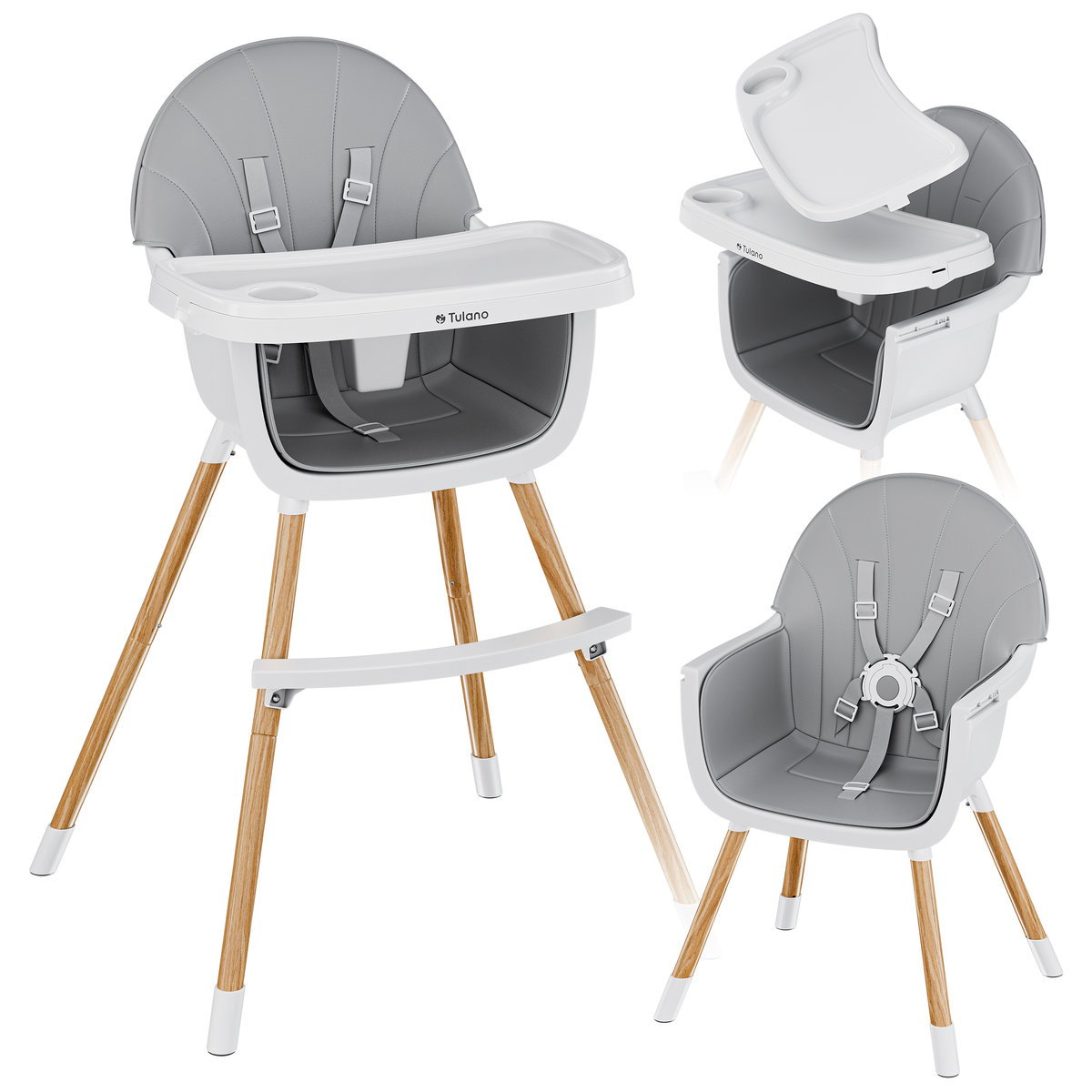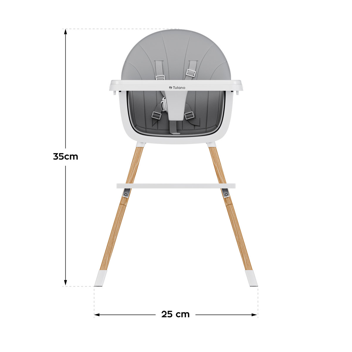 Wysoki fotelik do karmienia — świetnypodczasrodzinnych posiłków przy stole.