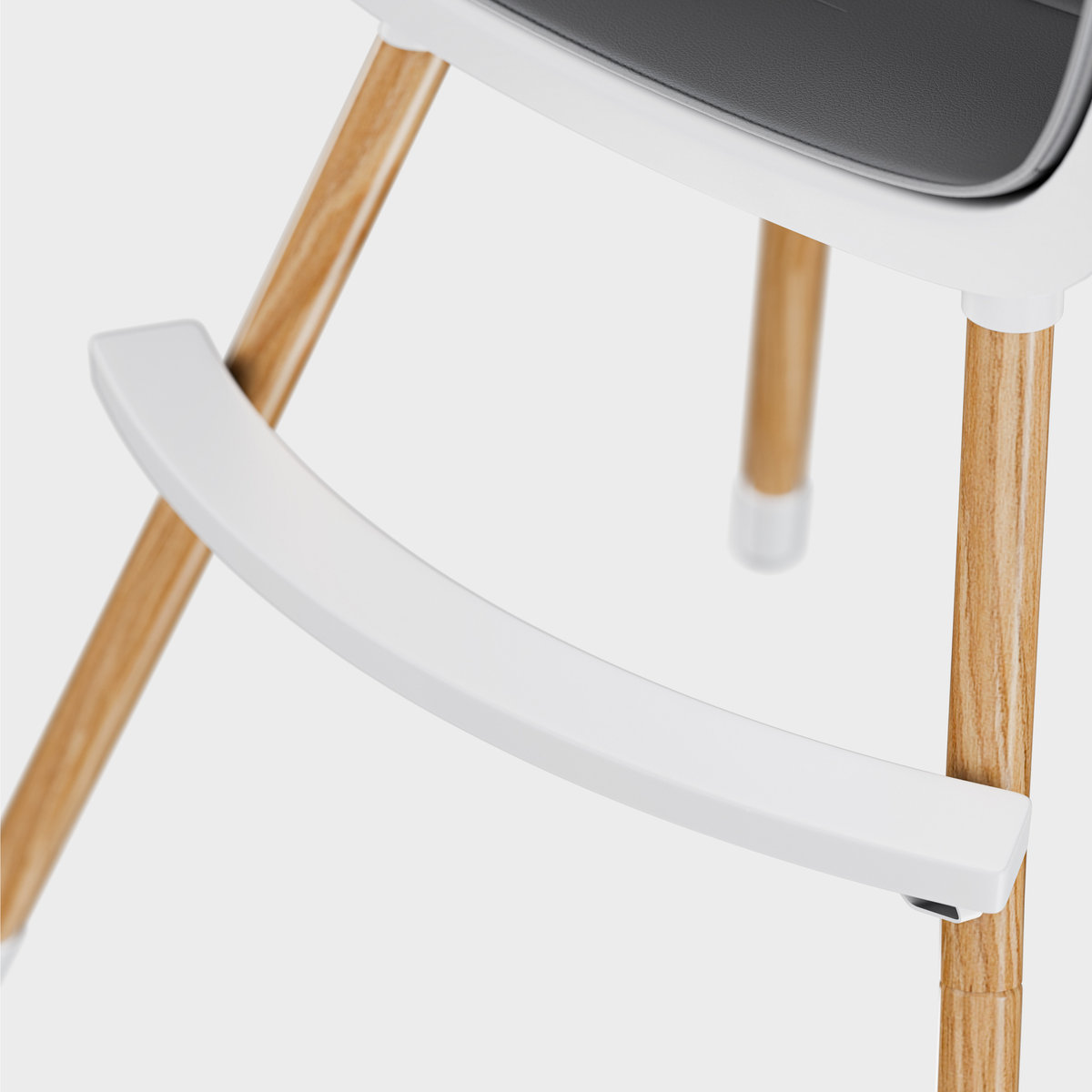 Podnóżek zapewnia stabilną pozycję w trakcie jedzenia i korzystnie wpływa na układ trawienny dziecka.