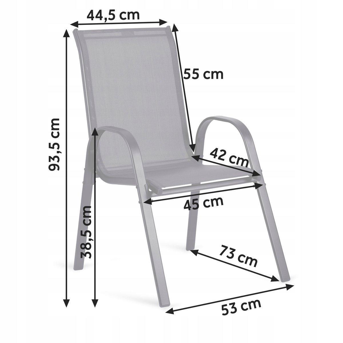 Krzesła ogrodowe wyróżniają się wyjątkową trwałością i stabilnością dzięki mocnemu stelażowi ze stali malowanej proszkowo.