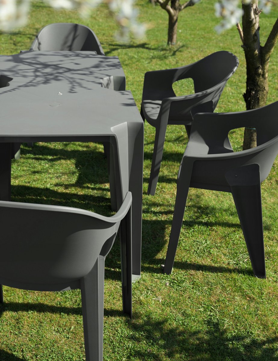 Krzesło świetnie prezentuje się zarówno solo, jak i w zestawieniu z innymi meblami z kolekcji mebli ogrodowych— daje mnóstwo możliwości tworzenia ciekawych i spójnych aranżacji.