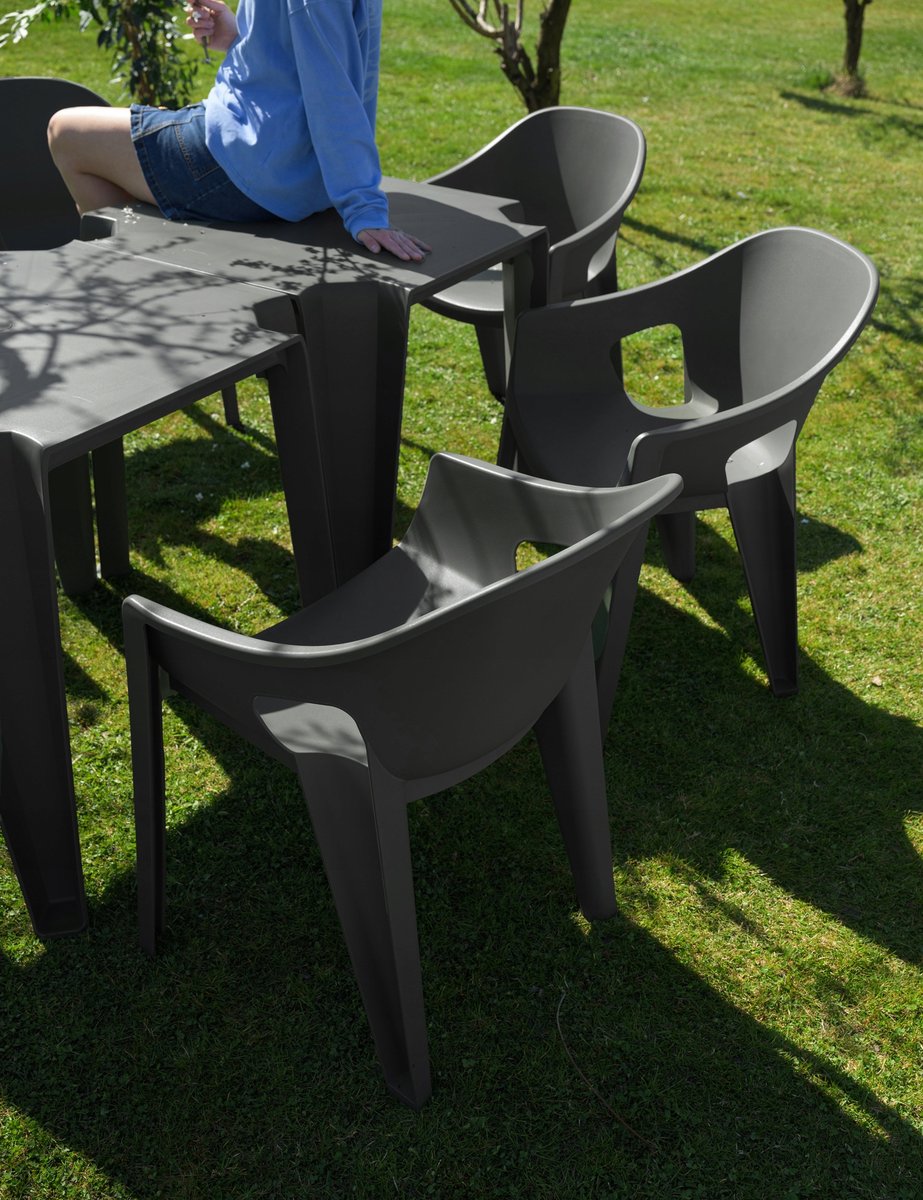 ✅ Krzesła zostały wykonane z trwałego tworzywa sztucznego, które są odporne na wilgoć, promienie UV i zmiany temperatury. Dzięki temu doskonale sprawdza się na świeżym powietrzu przez cały sezon – w ogrodzie, na balkonie czy tarasie. Po sezonie wystarczy złożyć je jedno na drugim i schować – zajmą niewiele miejsca.