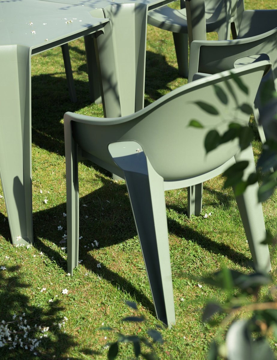 Krzesło świetnie prezentuje się zarówno solo, jak i w zestawieniu z innymi meblami z kolekcji mebli ogrodowych— daje mnóstwo możliwości tworzenia ciekawych i spójnych aranżacji.