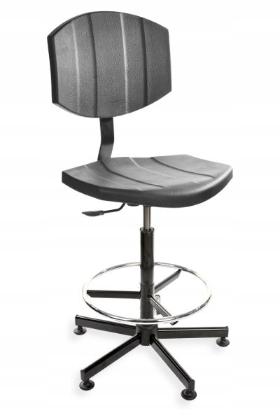 Krzesło przemysłowe z pianki integralnej o bardzo wysokiej odporności na zanieczyszczenia chemiczne.