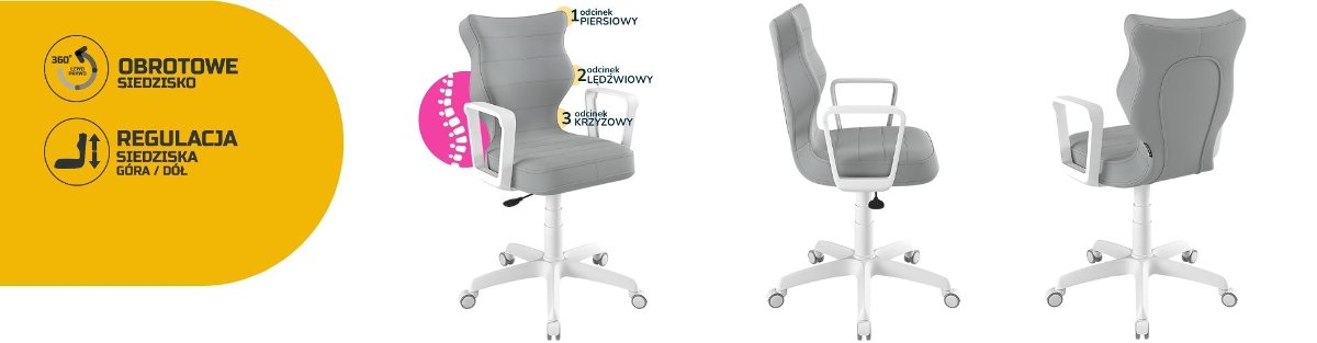 | Nazwa: | Entelo, Krzesło do biurka dla dziecka dopasowane do wzrostu 146-176,5 cm, model Norm kolor szary obrotowe |