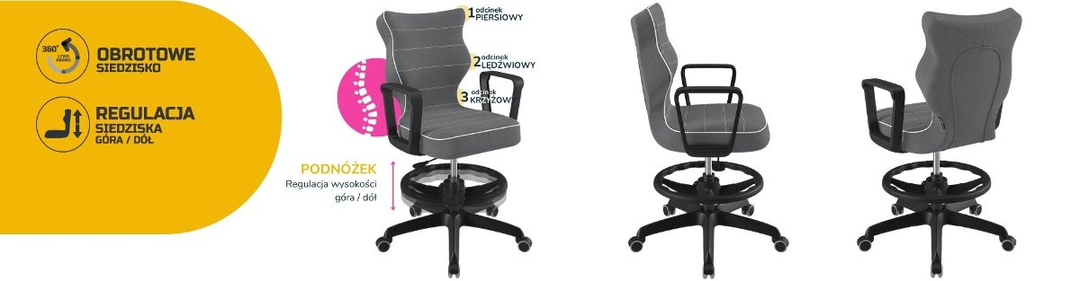 Właśnie zrecenzowałem Entelo, Krzesło do biurka dla dziecka dopasowane do wzrostu 159-188 cm, model Norm z podnóżkiem kolor ciemny szary obrotowe