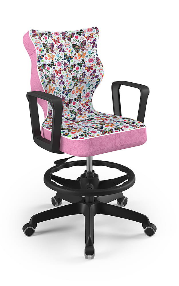 | Nazwa: | Entelo, Krzesło do biurka dla dziewczynki dopasowane do wzrostu 146-176,5 cm, model Norm z podnóżkiem motyw motylki obrotowe |