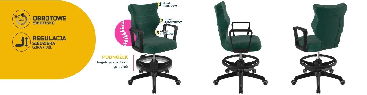 Właśnie zrecenzowałem Entelo, Krzesło do biurka dla dziecka dopasowane do wzrostu 146-176,5 cm, model Norm z podnóżkiem kolor zielony brotowe