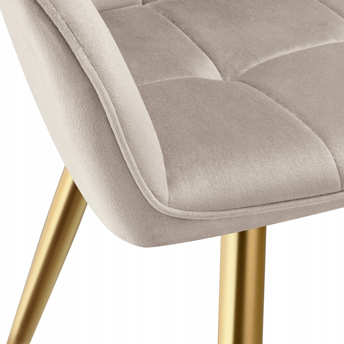 Smukłe, chromowane stalowe nogi zachwycają uroczym wyglądem w kolorze błyszczącego złota, a także przyczyniają się do ogromnej stabilności i sprężystości. Antypoślizgowe, chroniące podłogę plastikowe nakładki na nóżki zapobiegają zarysowaniom podłogi i zapewniają doskonałą stabilność.