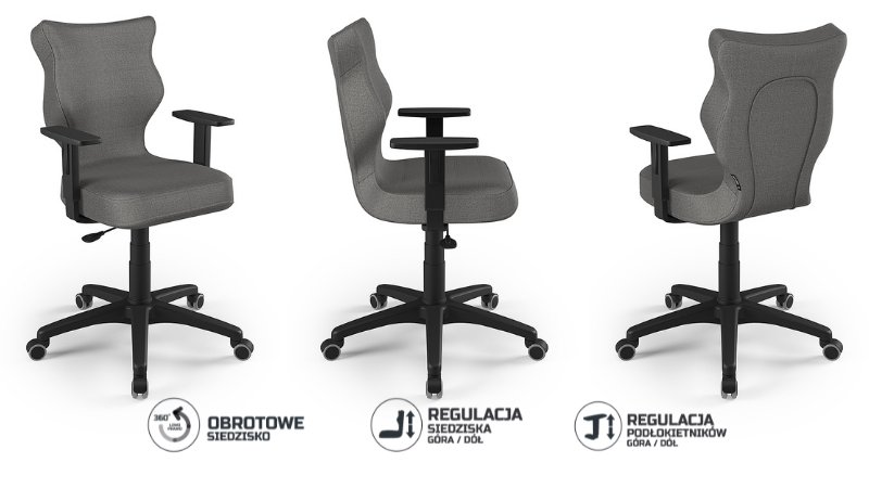 Właśnie zrecenzowałem Entelo, Krzesło do biurka dla dziecka dopasowane do wzrostu 146-176,5 cm, model Duo kolor ciemny szary obrotowe