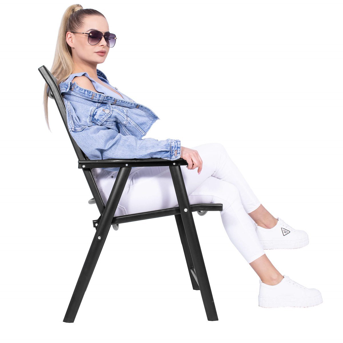 - Łukowato wygięte elementy za oparciem i pod siedziskiem stanowią wygodne uchwyty, które ułatwiają przenoszenie złożonego krzesła oraz jego rozkładanie