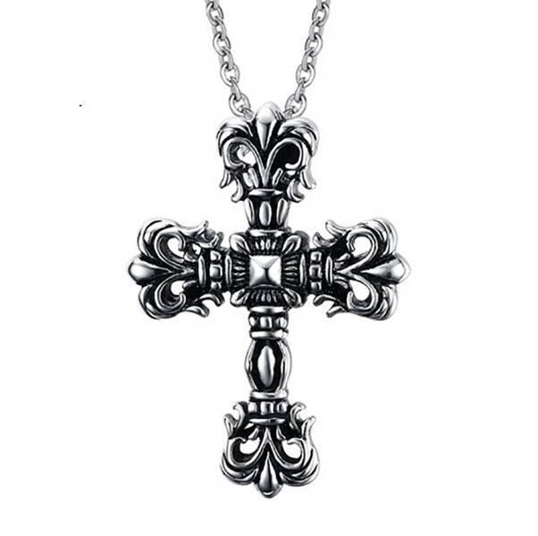 Krzyż gotycki srebrny 5,5 x 4 cm krzyż metalowy w stylu gotyckim, kolor: srebrny, wielkość krzyżyka: 5,5 x 4 cm, długość łańcuszka ok. 60 cm.