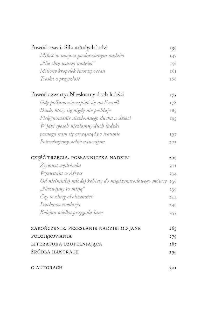 W tej niezwykle ważnej książce Jane Goodall oraz Douglas Abrams, współautor międzynarodowego bestsellera Wielka księga radości, prowadzą intymny i skłaniający do rozważań dialog na temat jednego z najbardziej pożądanych i najmniej poznanych aspektów ludzkiej natury – NADZIEI. W Księdze nadziei Jane skupia się na „czterech powodach do nadziei”: wspaniałym intelekcie, wytrzymałości natury, mocy młodych ludzi oraz niezłomnym duchu ludzkim. Pokazuje, że pomimo wielu problemów, z jakimi zmaga się ludzkość, nadal możemy marzyć i stworzyć lepszy świat. Ta nadzieja szczególnie dziś jest nam bardzo potrzebna.