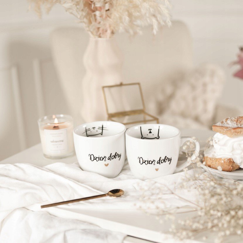„Dzień dobry kotku” – takie powitanie chce słyszeć każde z nas z samego rana. To oznaka czułości, którą dzielą ze sobą kochankowie. Nasz kubek, poza miłosnym przesłaniem, ma także charakter humorystyczny, który wprowadziliśmy poprzez narysowanie uroczego kotka wewnątrz kubka.