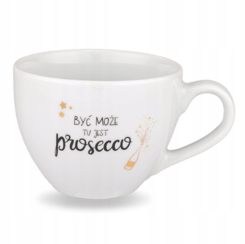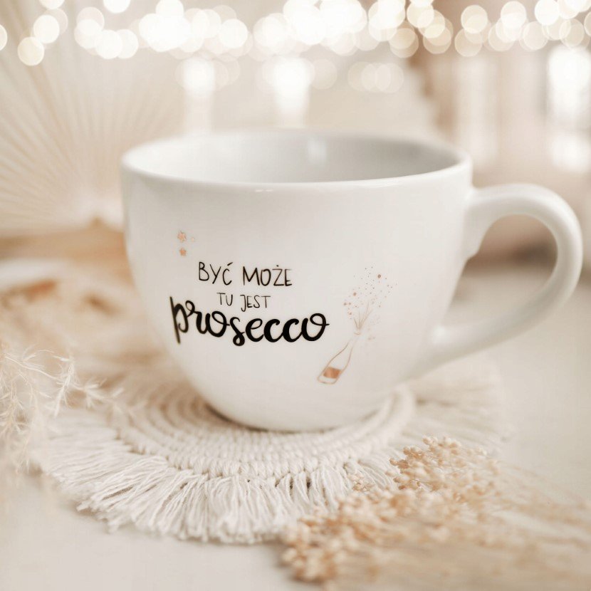 Kubek 500 ml - Być może jest tu PROSECCO to idealny wybór dla osób, które pragną celebrować codzienność z wyjątkowym akcentem. Wykonany z wysokiej jakości grubej porcelany, ten elegancki kubek o pojemności 500 ml nie tylko doskonale nadaje się do picia ulubionych napojów, ale także staje się wyjątkowym elementem codziennych rytuałów.