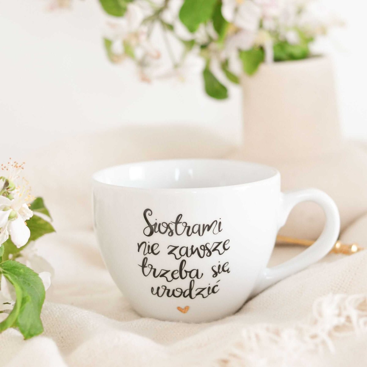 Właśnie zrecenzowałem Kubek porcelanowy, z napisami, Siostrami nie zawsze trzeba się urodzić, 500 ml, Nadzwyczajnie, biały