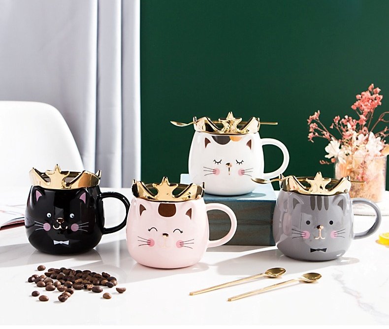 Uwielbiasz koty ?A może chcesz sprawić prezent osobie która je kocha ?Piękny, elegancki, ceramiczny kubek w kształcie kotka jest idealny dla Ciebie !Kubek sprzedajemy w zestawie ze złotą przykrywką w