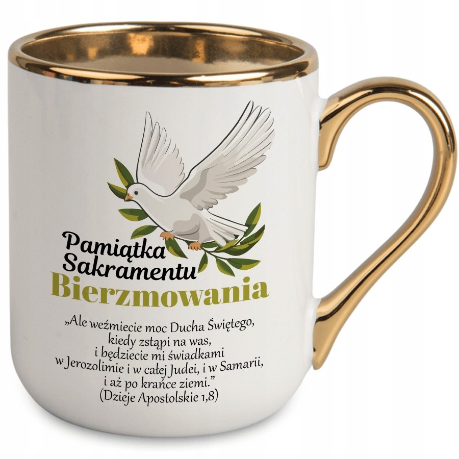🎁 Kubek ELEGANT BIAŁY UCHO RANT ZŁOTY na Bierzmowanie z Inspirującymi Cytatami z Biblii 📖Szukasz wyjątkowego prezentu na bierzmowanie? Oto kubek, który nie tylko cieszy oko swoim pięknym designem, ale także inspiruje swoimi mądrymi słowami prosto z Pisma Świętego! | |