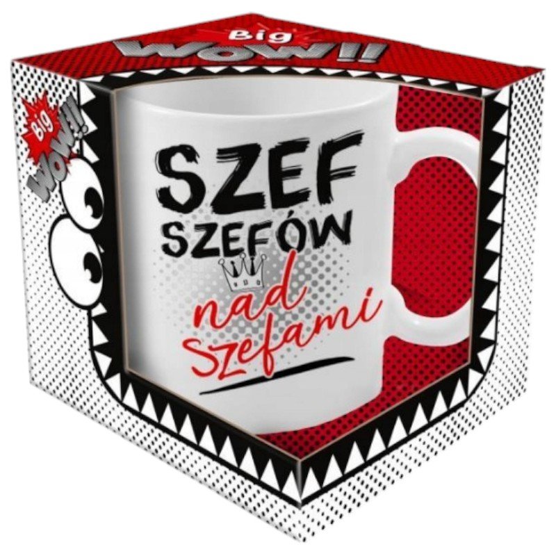 Prezentujemy wyjątkowy kubek, idealny na prezent dla szefa. Jego imponujący rozmiar i solidne wykonanie z białej ceramiki sprawiają, że jest zarówno praktyczny, jak i efektowny. Na kubku znajduje się zabawny napis "SZEF SZEFÓW" oraz stylizowana korona, symbolizująca autorytet przełożonego. Dodatkowy tekst, wyróżniony czerwonym kolorem, nadaje całości jeszcze większego znaczenia: "nad szefami". To doskonały upominek dla szefa z poczuciem humoru i zamiłowaniem do dużych porcji kawy. Funkcjonalność połączona z humorem z pewnością wywoła uśmiech na jego twarzy.