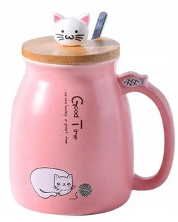 | Nazwa: | Kubek Kot Kotek ceramiczny czerwony 420ml + łyżeczka + pokrywka DLA KOCIARY |