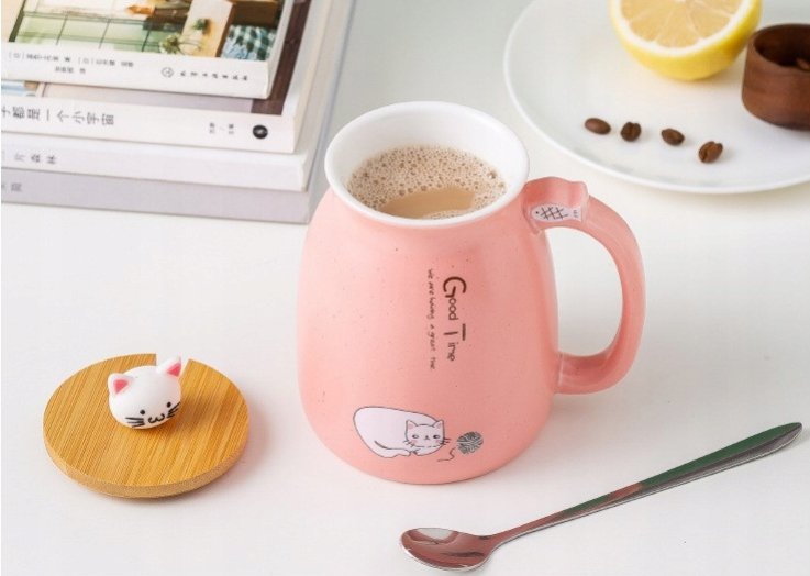 Właśnie zrecenzowałem Kubek Kot Kotek ceramiczny czerwony 420ml + łyżeczka + pokrywka DLA KOCIARY