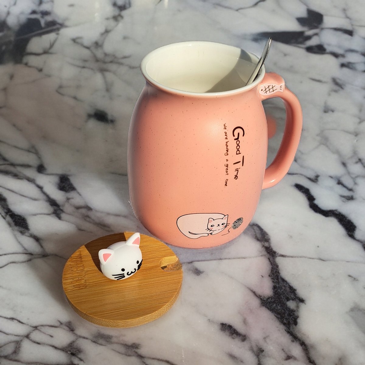 ń Kubek Kot Kotek ceramiczny czerwony 420ml + łyżeczka + pokrywka DLA KOCIARY Przedstawiamy kubek kotek z bambusowym zamykaniem oraz łyżeczką :)PRZECZYTAJ:Zakup bez ryzyka - Nie trać ...
