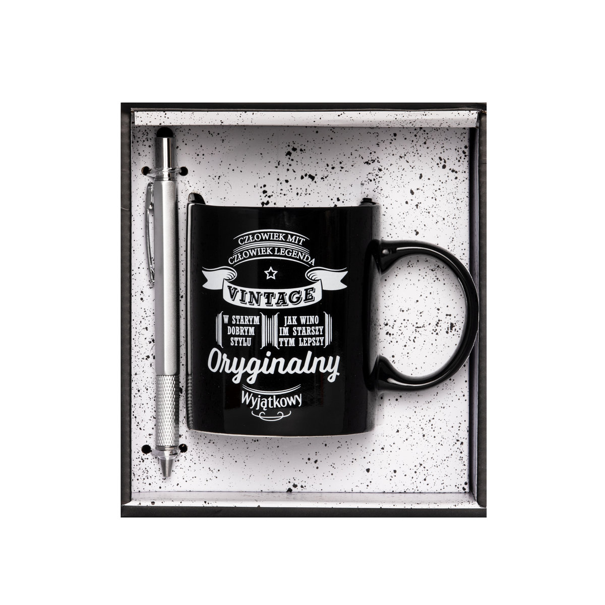 Empik, Kubek i Długopis Multitool, Vintage, 300 ml czarny kubek ozdobiony białymi napisami pojemność: 300 ml kolor główny: czarny, biały multitool 6w1 długopis, rysik do ekranu dotykowego, ...