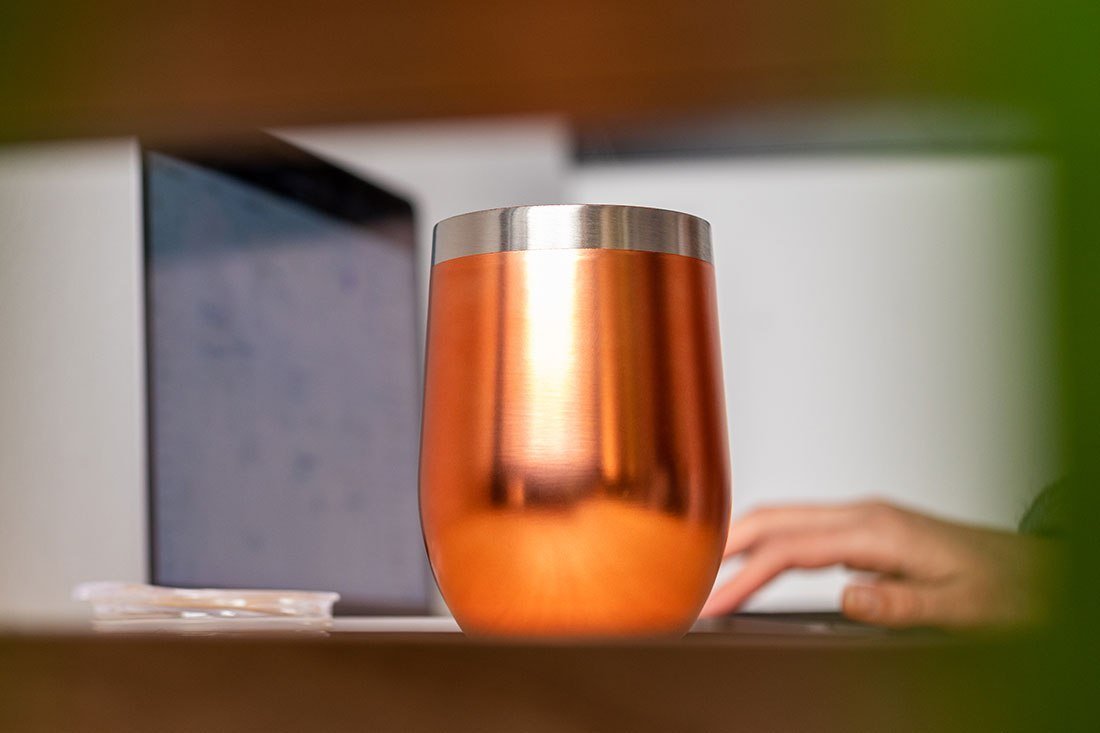 Kubek ze stali nierdzewnej o podwójnych ściankach (izolacja próżniowa) i pojemności 380 ml. Przezroczyste plastikowe wieczko posiada silikonową uszczelkę. Otwór do picia nie jest zamykany, wypełniony