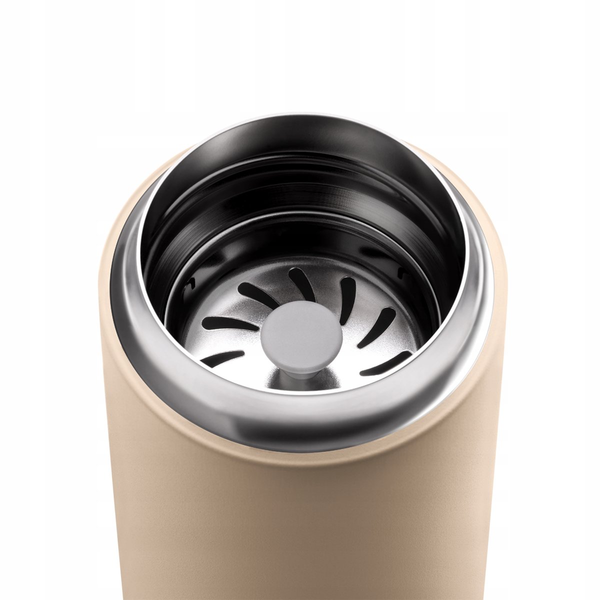 Wykonany jest z wysokiej jakości stali nierdzewnej, a jego wnętrze pokryte jest ceramiczną powłoką, która nie wpływa na smak napoju.