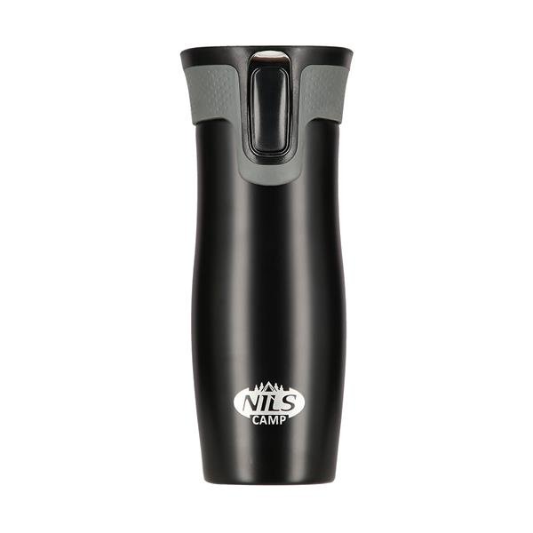 Kubek termiczny NCC03 marki Nils Camp cechuje zarówno prosta konstrukcja jak i oryginalny design! NCC03 to kubek termiczny, który wykonany jest ze stali nierdzewnej o podwójnej ściance, dzięki czemu gwarantuje utrzymanie temperatury ciepłych napoi przez 12 godzin, a zimnych przez 24 godziny. Kubek termiczny NCC03 posiada innowacyjny system otwierania. Aby móc się napić, należy wcisnąć i trzymać przycisk – wtedy blokada otworu się zwalnia. Natomiast, żeby zablokować otwór, wystarczy zwolnić przycisk.