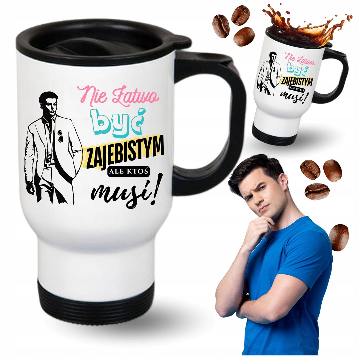 ⭐️ Kubek Termiczny Z Nadrukiem Do Kawy Na Prezent 410 ml Nie Łatwo Być ⭐️