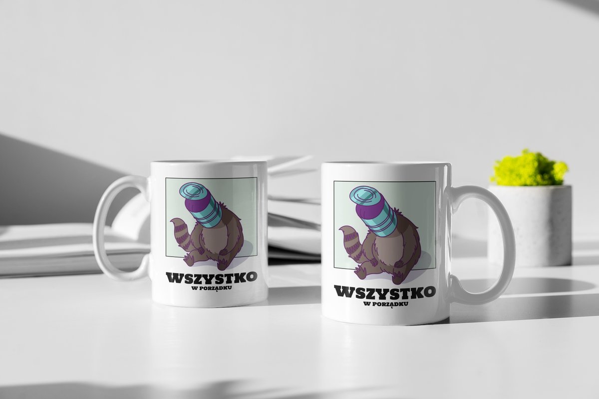 Właśnie zrecenzowałem Kubek ceramiczny Wszyskko W Porządku Zabawny Gadżet Mem Szop, 330ml, Zebra
