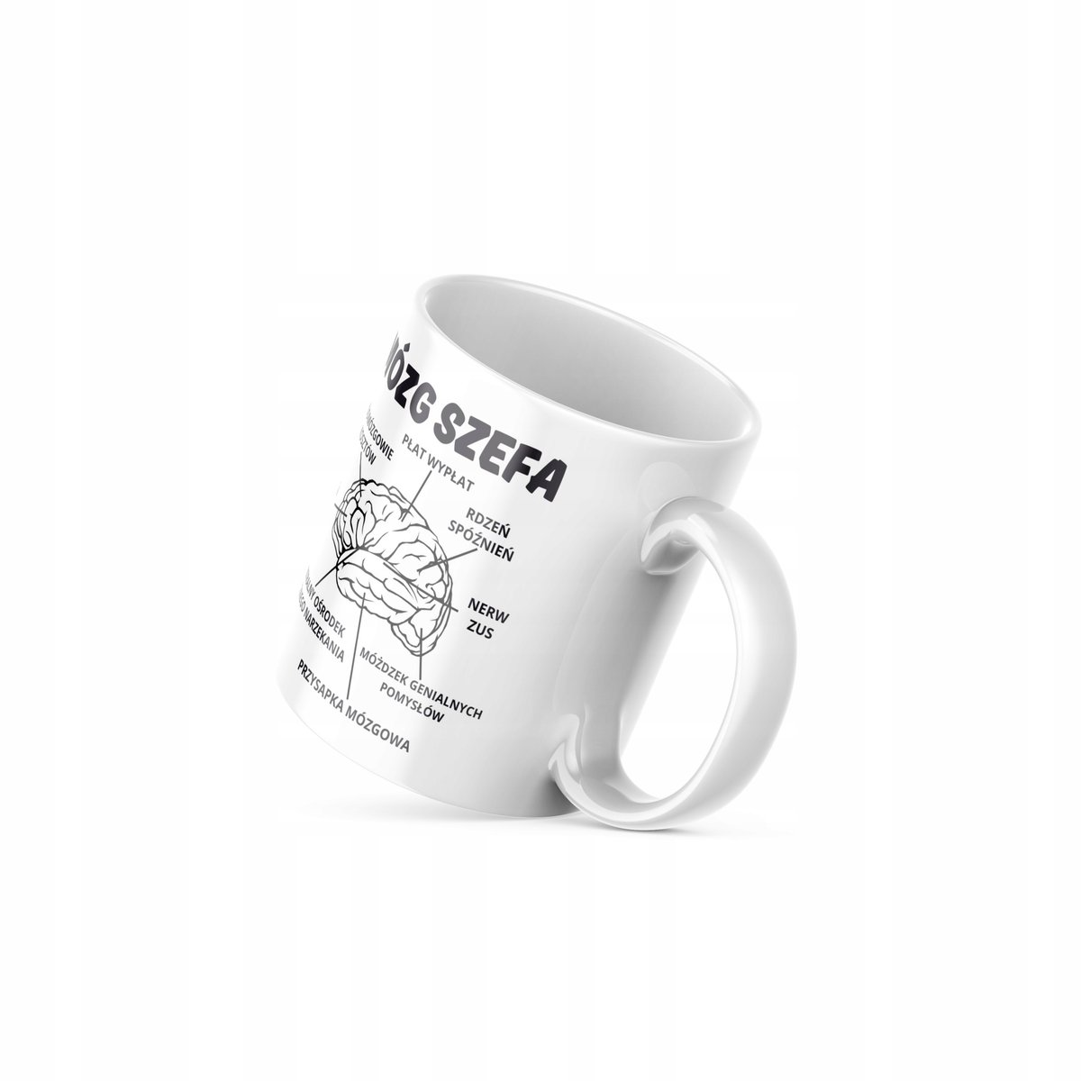 STYLOWY BIAŁY KUBEK o pojemności 330 ml z napisem Kubek z nadrukiem 330 ml "Mózg Szefa"