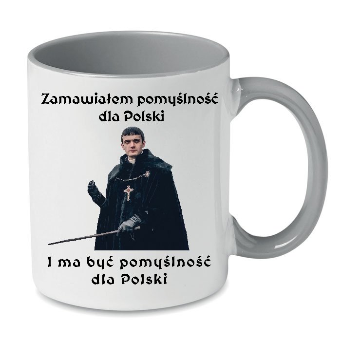 Kubek z nadrukiem Cytat filmowy serial 1670 Jan Paweł BCS-1670-014 Kubek ceramiczny z cytatem z serialu 1670 KUBEK BIAŁY UCHWYT i ŚRODEK SZARY Z CYTATEM Materiał: CERAMIKA Pojemność: 330 ml ...