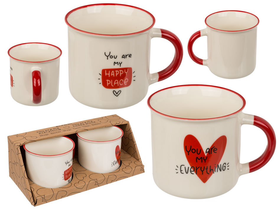 Kubki dla zakochanych - komplet 2 sztuk Zestaw 2 porcelanowych kubków z napisami You are my everything i You are my happy place. Atrakcyjny design kubków oraz grafika zapewnią, że będzie to ...