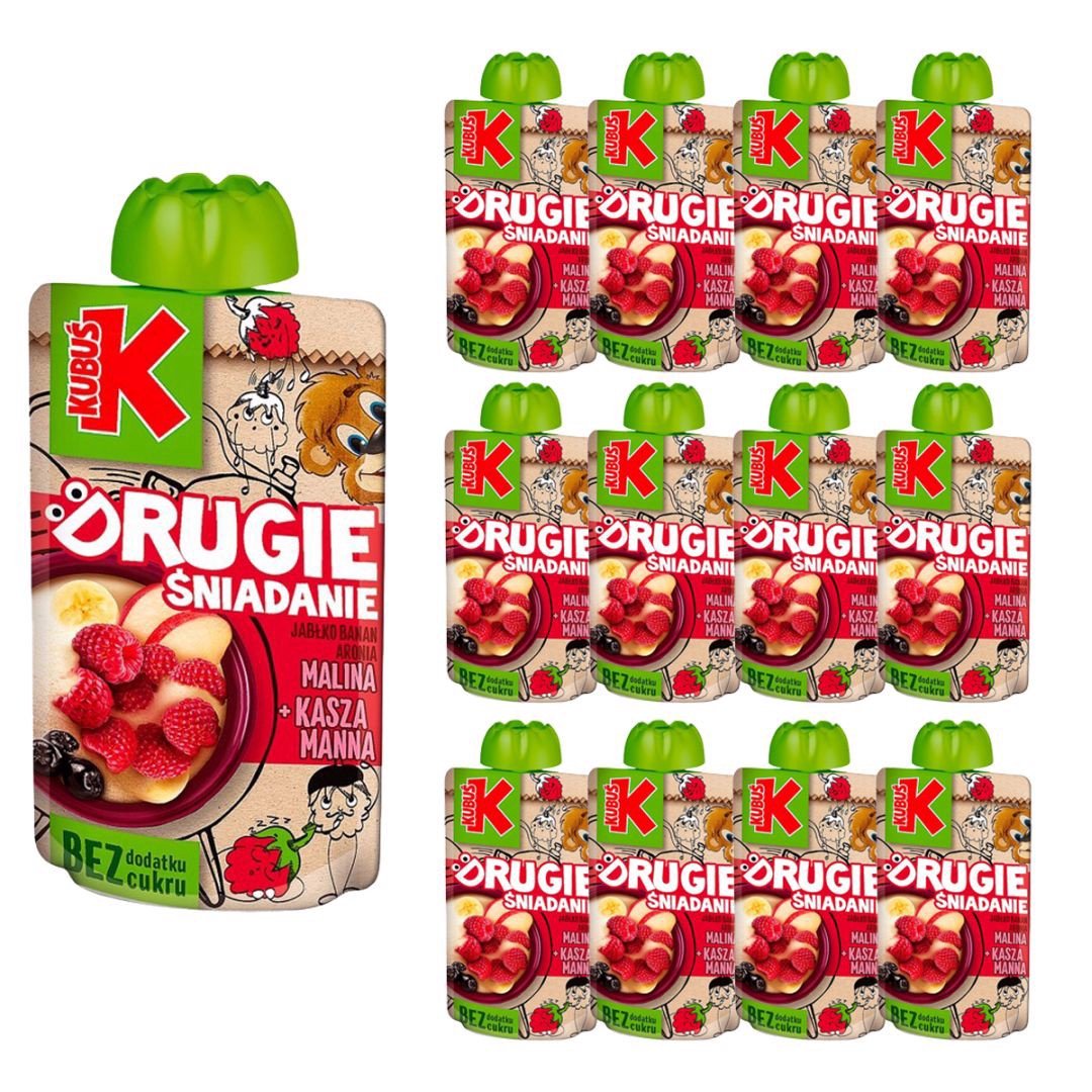 Właśnie zrecenzowałem Kubuś Drugie śniadanie Mus jabłko banan aronia malina + kasza manna 100 g x 12 sztuk
