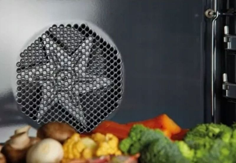 Piekarnik, teraz jeszcze bardziej przestronny, ma owalny kształt, który z powodzeniem naśladuje tradycyjne piece opalane drewnem. Pozwala to na optymalną cyrkulację powietrza, która całkowicie obejmuje potrawę, dzięki czemu jest delikatna i soczysta w środku, a poza tym niesamowicie chrupiąca. Powietrze jest jeszcze lepiej rozprowadzone w 71-litrowym wnętrzu z zagłębionymi bokami, co zmniejsza występowanie zimnych miejsc. Specjalna dynamika cyrkulacji powietrza zapewnia doskonałe warunki do profesjonalnego gotowania na pojedynczym poziomie lub na kilku poziomach jednocześnie.