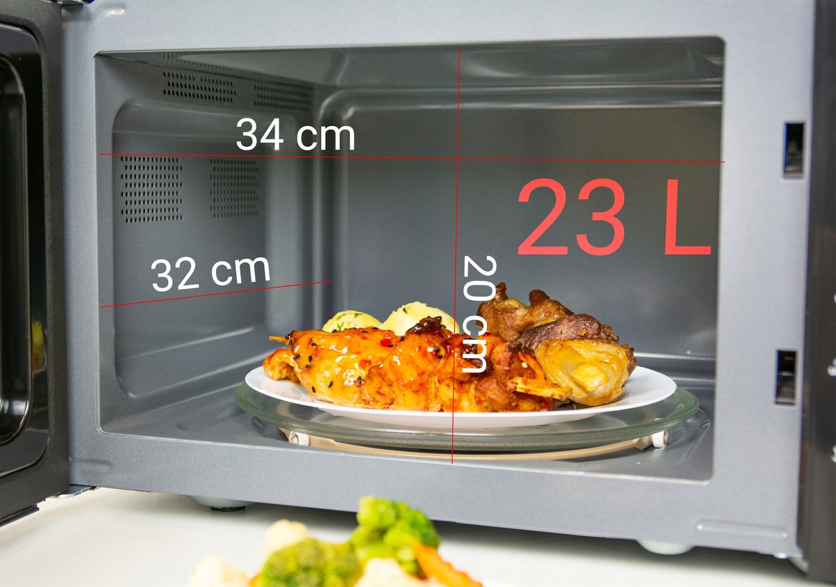 Żeby podgrzać obiad w tej mikrofalówce wystarczy wybrać żądaną funkcję oraz wybrać czas podgrzewania. Po kilku minutach posiłek będzie gotowy!