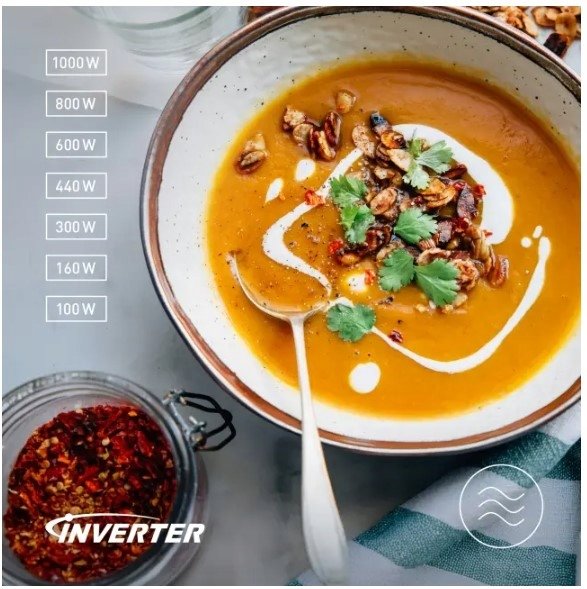Pożegnaj się z przegrzanymi lub niedogotowanymi fragmentami jedzenia. Dzięki mikrofalówce GD35 Twoje jedzenie będzie równomiernie podgrzane i smaczne. Nawet czekolada roztopi się gładko, bez grudek. To możliwe dzięki technologii Inverter firmy Panasonic, która precyzyjnie kontroluje moc, zapewniając równomierne podgrzewanie.