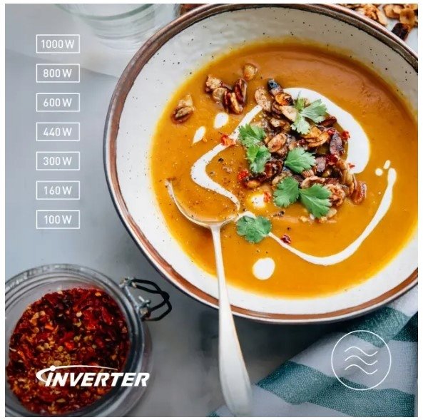 Ciesz się pysznie ciepłymi posiłkami w krótkim czasie dzięki technologii inwerterowej w kuchence mikrofalowej GD38 z funkcją grilla. W przeciwieństwie do modeli bez inwertera, technologia Inverter w mikrofali Panasonic precyzyjnie kontroluje moc mikrofal, aby równomiernie podgrzewać jedzenie, eliminując gorące i zimne miejsca, jednocześnie zachowując wartości odżywcze. Wysoka moc 1000W pozwala na podgrzewanie różnych potraw – do dyspozycji masz 7 poziomów mocy mikrofal oraz 3 poziomy mocy grilla. Jeśli zależy Ci na szybkim podgrzaniu, wystarczy, że użyjesz przycisku Quick 30.