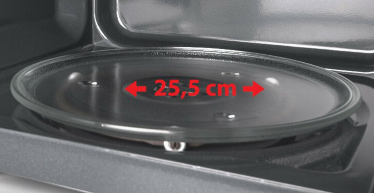 Obrotowy szklany talerz o średnicy 255 mm w kuchence STAR-Q idealnie zmieści Twoje podgrzewane dania.