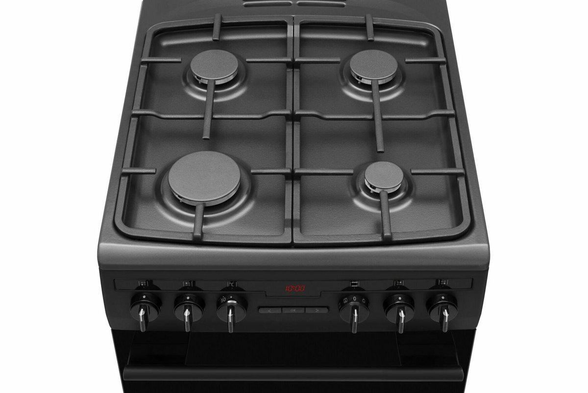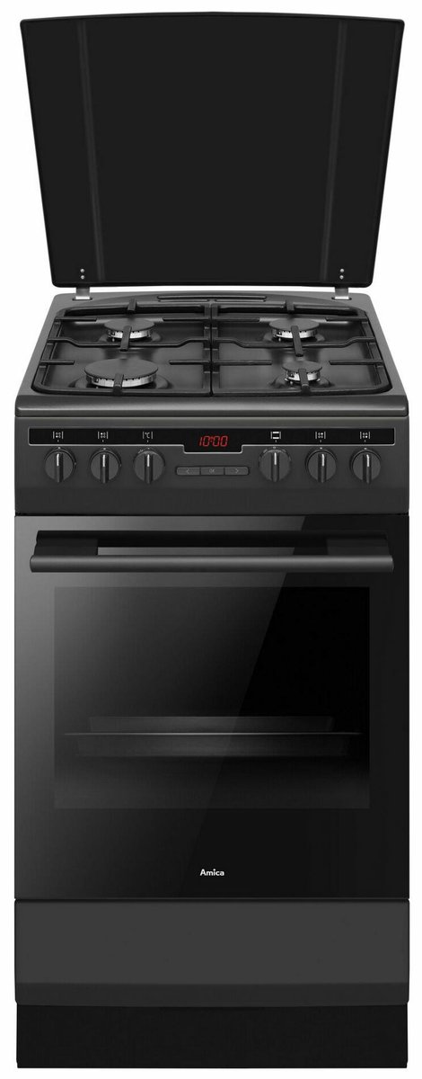 Kuchnia wolnostojąca gazowo-elektryczna AMICA 57GED2.33HZPTAA(BM) o szerokości 50 cm, pojemności piekarnika 62 l, wyposażony w programator elektroniczny Ta, z 8 funkcjami pieczenia, w klasie energetycznej A.