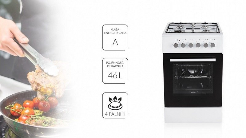 Zapalanie gazu w modelu MPM-54-KGE-03 jest niezwykle proste. Nie musisz pamiętać o zapalniczce czy zapałkach. Przycisk zapalarki został umieszczony w pokrętle. Wystarczy go przekręcić by wzniecić ogień. Takie rozwiązanie zapewnia wygodę, ale też zmniejsza ryzyko przypadkowego poparzenia.