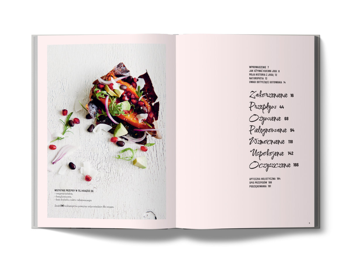 Ta książka jest skierowana nie tylko do praktykujących jogę, lecz do każdego, kto chce odżywić swoje ciało i odnaleźć równowagę dzięki zdrowym, wegetariańskim posiłkom bez glutenu i rafinowanego cukru. Została podzielona na siedem rozdziałów w oparciu o siedem czakr, a każdy został skomponowany tak, by wspierać różne centra energii w twoim ciele. To pomoże ci odkryć, czego pragnie twój organizm oraz jak jeść, by zapewnić mu długotrwale zdrowie!