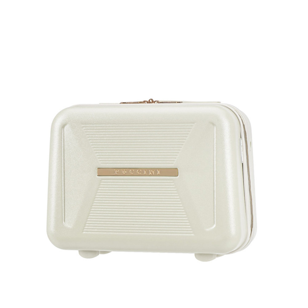 ⏩ Subtelne metalowe elementy w tonacji rose gold harmonijnie współgrają z białym poliwęglanem, z którego wykonano kuferek. Poliwęglan ten charakteryzuje się wyjątkową trwałością i odpornością na uszkodzenia, co sprawia, że kuferek jest niezwykle praktyczny i niezawodny w każdej podróży.