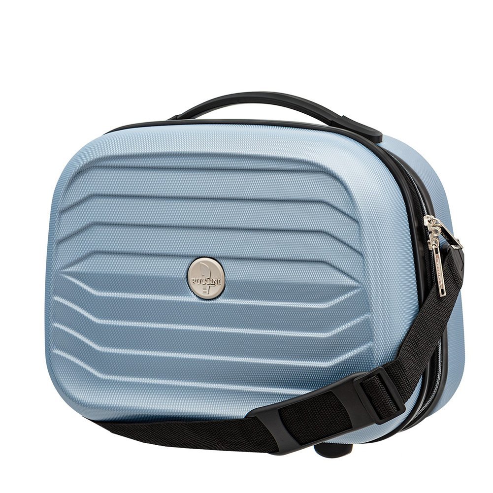 Budowa: kufer twardy wykonany z wytrzymałego ABS`u możliwość nałożenia na stelaż walizki hipoalergiczna podszewka z licznymi przegrodami na kosmetyki cztery stopki ochronne dwie komory, ...