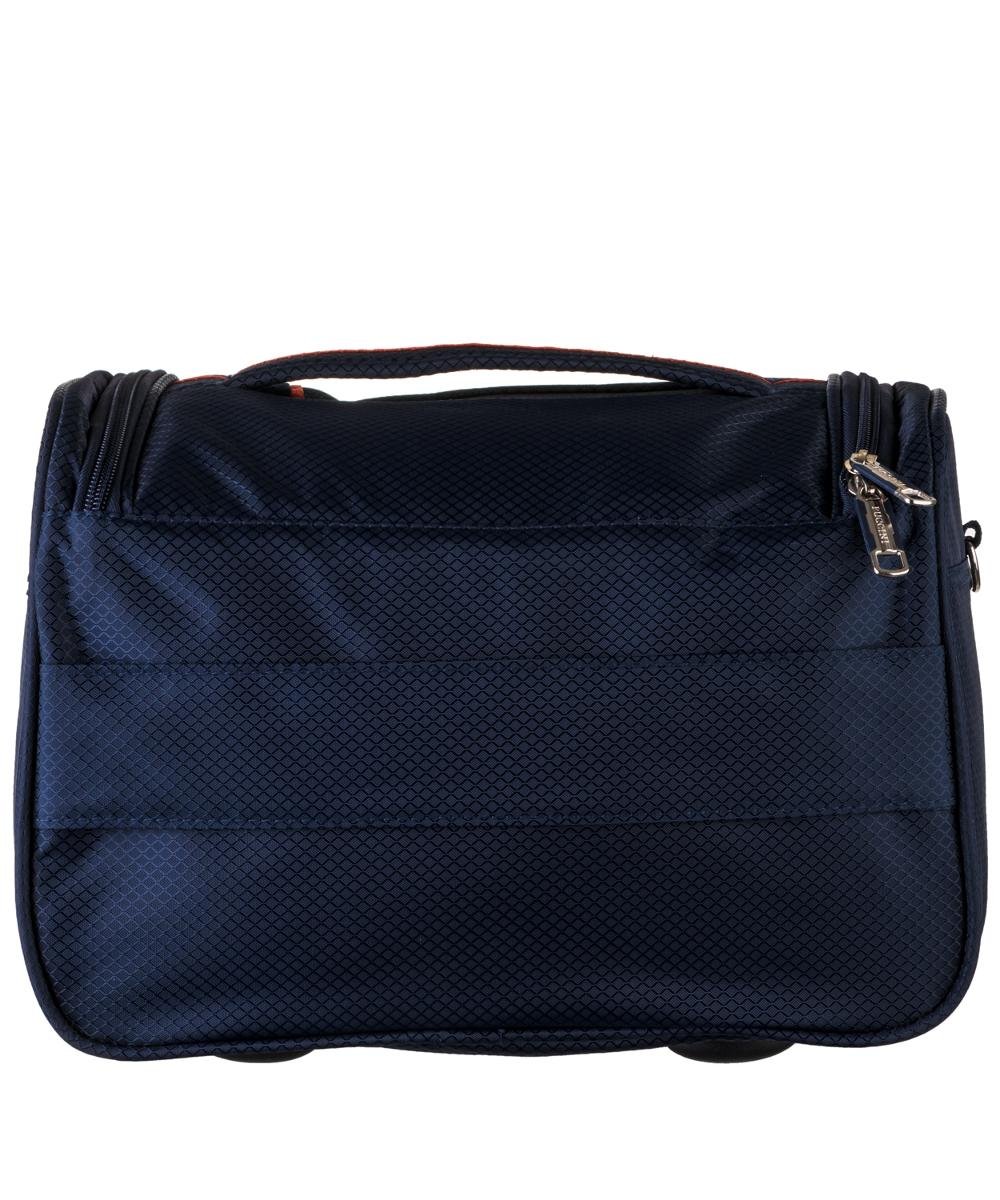 Kuferek z kolekcji Padwa charakteryzuje klasyczna forma z efektownym designem, która zadowoli niejednego miłośnika podróży. Lekki, a zarazem pojemny model idealnie sprawdzi się w każdej sytuacji.Kuferek jest jednokomorowy, otwierany do góry. Na froncie znajduje się funkcjonalna kieszeń na drobiazgi, z gustownym, okrągłym logo z nazwą marki. Na wewnętrznej stronie klapy również zostały umieszczone dwie kieszenie zapinane na zamek: z siatki i foliowa. Dodatkowo kuferek posiada wbudowany haczyk, umożliwiający rozłożenie i powieszenie go w dowolnym miejscu. Taka funkcjonalność gwarantuje szybki i precyzyjny dostęp do niezbędnych kosmetyków czy akcesoriów. Na tylnej ściance tego modelu został umieszczony elastyczny pasek, podzielony na pięć przegródek, który zabezpiecza zawartość przed przemieszczeniem. Dodatkowo nad paskiem znajdziemy lusterko mocowane na rzep umożliwiające sprawne wykonanie makijażu lub przeprowadzenie drobnych zabiegów higienicznych. We wnętrzu kuferka, po bokach umieszczono dwie, zakończone gumowymi ściągaczami kieszenie, które znacznie ułatwią ustawienie kosmetyków w pozycji pionowej. Kuferek zabezpieczony został z przodu wysoką kieszenią z siatki, zamykaną na zamek . Akcesorium można przenosić w dłoni za pomocą wygodnego uchwytu lub na ramieniu, co umożliwia odpinany, regulowany pasek. Z tyłu od zewnętrznej strony modelu znajduje się uchwyt umożliwiający zamontowanie kuferka na stelażu walizki. Spód przed zarysowaniem zabezpieczają cztery stopki ochronne.