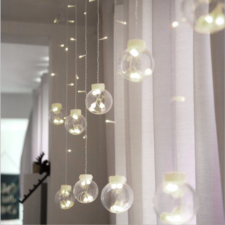 KURTYNA KULE WISZĄCE 108LED12 KULEK - W KAŻDEJ PO 5sz. LAMPEKSTAŁE ŚWIECENIE + 7 FUNKCJIBARWA ŚWIATŁA: BIAŁE ZIMNEMOŻLIWOŚĆ ŁĄCZENIA KILKU ZESTAWÓW W JEDENWYMIARY:Długość całego zestawu 5,3m (odcinek